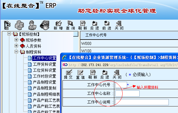 用于制造现场的工作中心、工序、工位等资料的设置。