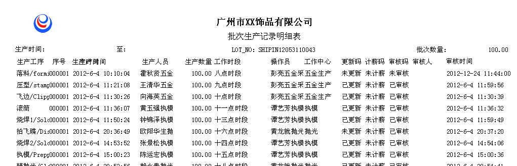 产品批次制程明细表、工序批次计价明细表