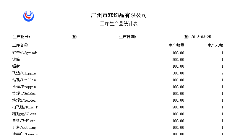 批次工序生产统计表、批次工序统计表、工序生产统计表、工序生产量统计表