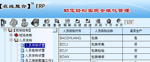 主要是对生产现场每个生产人员按各自所属的工作中心、工作岗位进行数据设置。