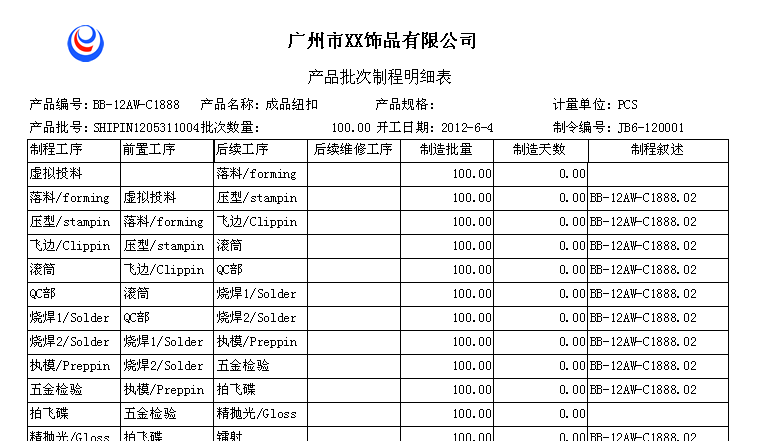 产品批次制程明细表、工序批次计价明细表