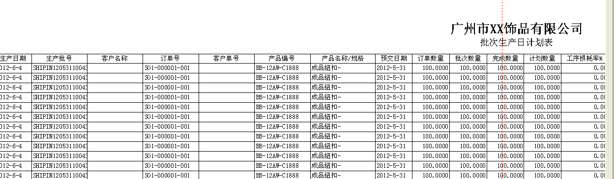 客户产品生产表、批次工序生产统计表、批次工序统计表